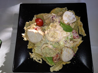 *Σαλάτα Κάρδαμο (φωλιά παρμεζάνας, iceberg, ντοματίνια, κοτόπουλο, ραντίτσιο, σως κάρδαμο και φύλλα μουστάρδας.)