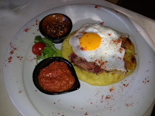 *Καβουρμάς αγριόχοιρου και αυγό μάτι πάνω σε καλαμποκίσια πίτα