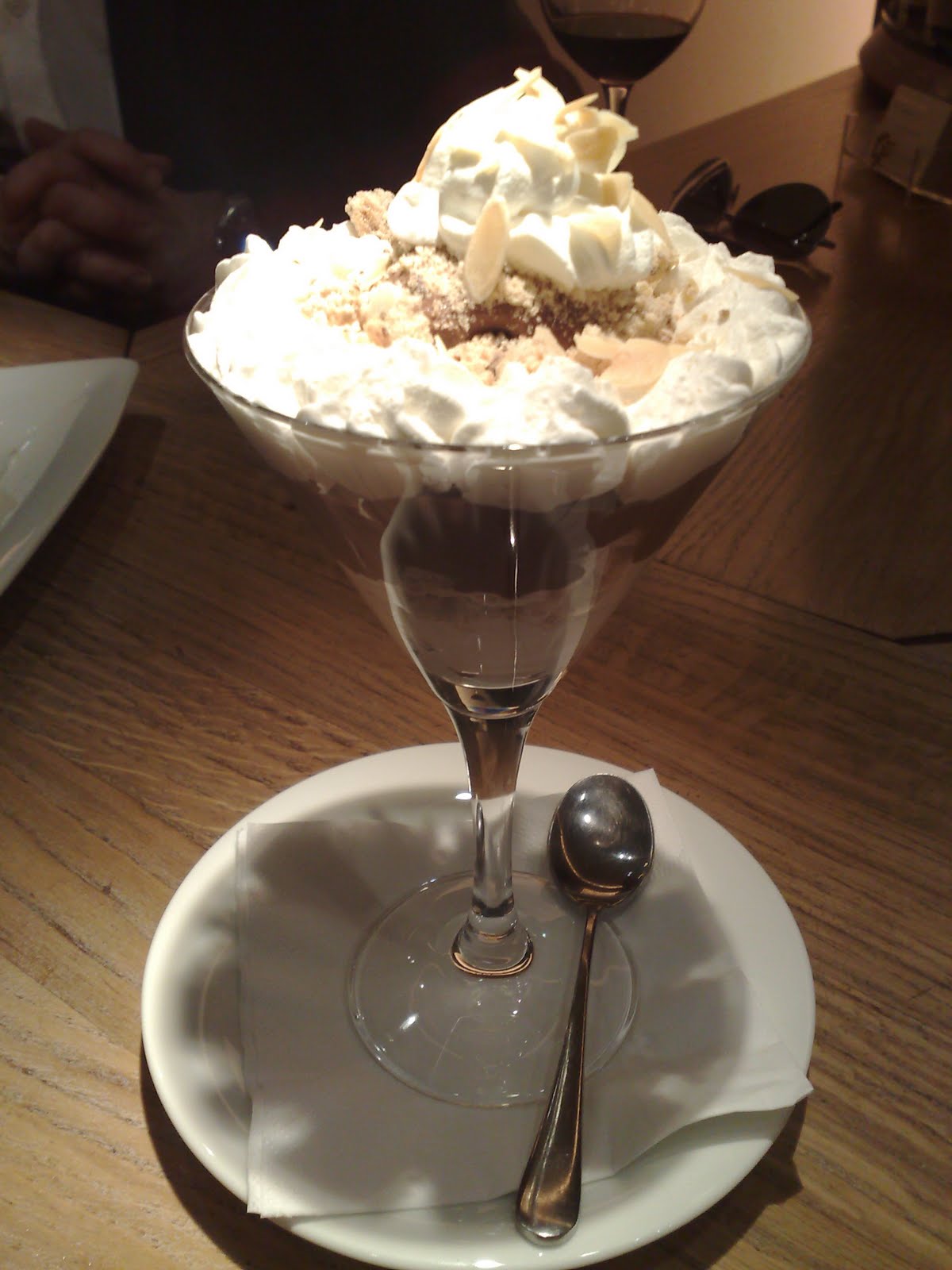 Κρέμα από μους σοκολάτας με Baileys, μαρέγκες και καραμελωμένα αμύγδαλα.