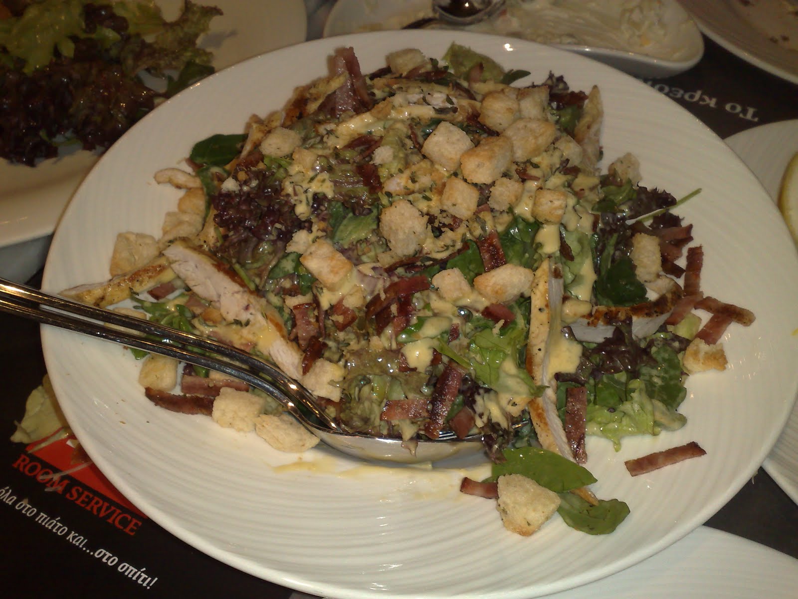και η σαλάτα του Καίσαρα με φιλέτο κοτόπουλο και σος αντσούγιας 11€