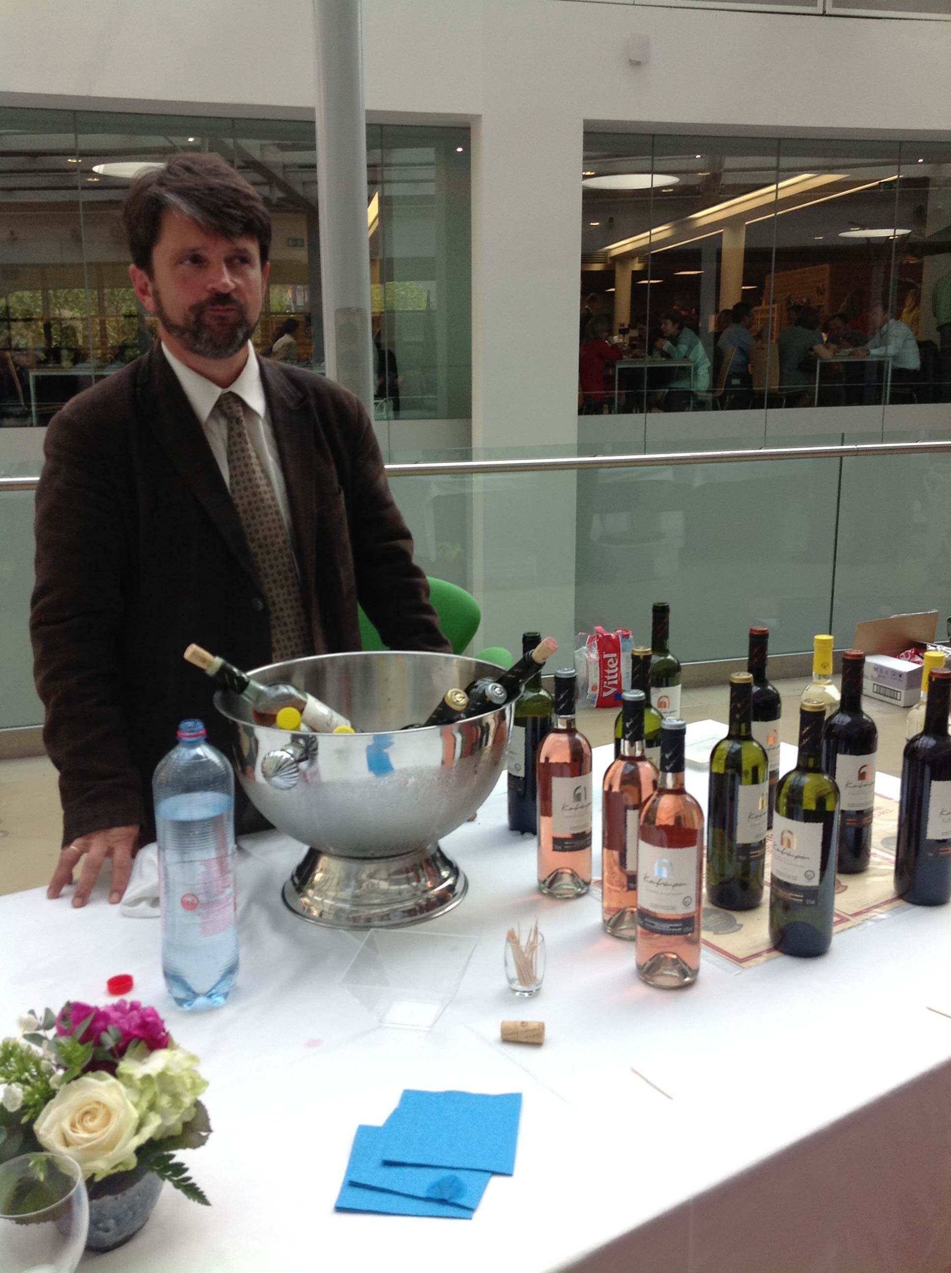 Ο κ.Δημήτρης Κιουτσούκης στο stand με κρασιά του οινοποιείου του