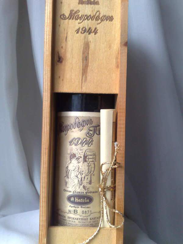 Η Μαυροδάφνη Πατρών είναι ένα γλυκό κρασί επιδόρπιο. Την Μαυροδάφνη Καρέλα του 1944 συνιστάται να την απολαύσετε σκέτη, μπορείτε όμως να τη δοκιμάσετε με φρούτα, κέικ η βραστά κάστανα. Εμφιαλώθηκε σε 1.200 φιάλες. Την φιάλη αυτή την βρήκαμε στο Anassa restaurant.