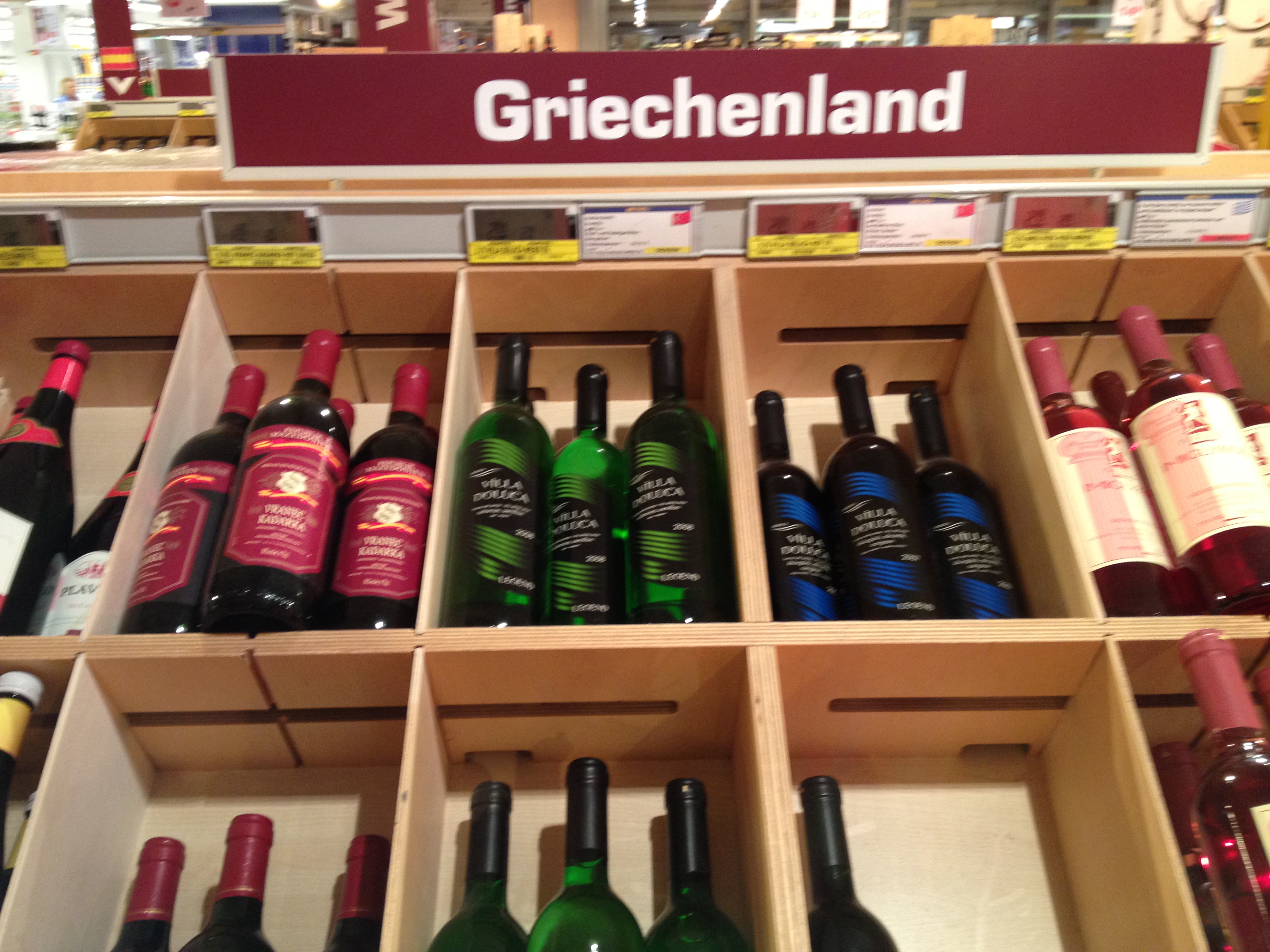 Το κατάστημα της αλυσίδας cash and carry, από το οποίο προέρχονται οι φωτογραφίες, βρίσκεται στο Βερολίνο στην περιοχή Tegel. Διαπιστώνουμε βέβαια ότι στο stand με την πινακίδα Griechland βρίσκονται και ετικέτες Τούρκικων κρασιών της εταιρίας Villa Doluca και κάπου στην άκρη και κάποια Ελληνική ετικέτα…
