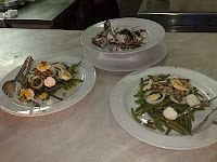 Υπέροχα φασολάκια βραστά με κάπαρη αυγά και σκόρδο.