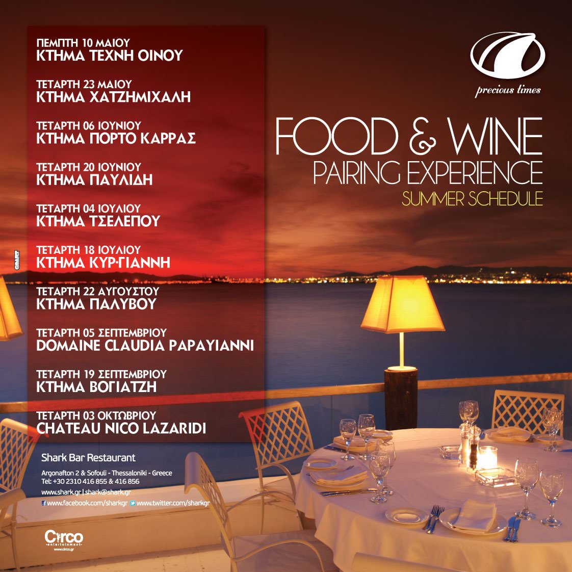 Την Τετάρτη 18 Ιουλίου, μία πολύ ιδιαίτερη γαστρονομική εμπειρία,περιμένει τους 70 λάτρεις του κρασιού,που θα έχουν την ευκαιρία να βρεθούν στο Bar Restaurant Shark.