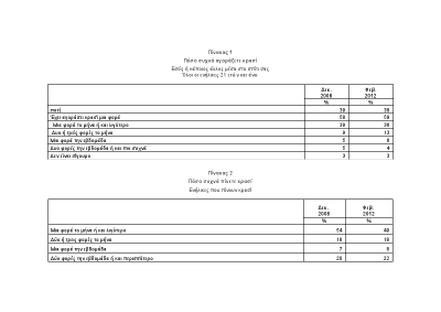 Παρακάτω είναι μερικά από τα αποτελέσματα της “Harris Poll” σε 2056 ενήλικες που πήραν μέρος σε διαδικτυακή έρευνα από τις 6 ως τις 13 Φεβρουαρίου του 2012 από την Harris Interactive.