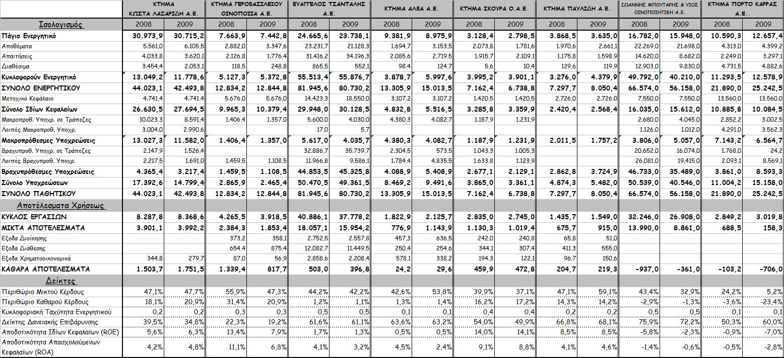 Συγκριτικά στοιχεία οινοποιείων