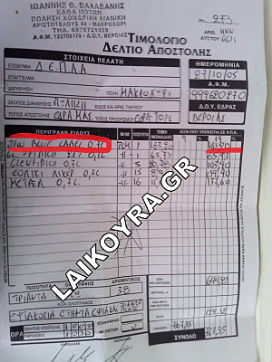 Ένα μπουκάλι ουίσκι Johnnie Walker Blue Label €163,20 χωρίς φ.π.α ( €195 με ΦΠΑ) για κέρασμα επισήμων. Και δεν ήταν μόνο αυτό, οι μερακλήδες του δήμου δείξανε ιδιαίτερη προτίμηση και στα Glenfiddich, για τα οποία χρεώσανε τον δήμο άλλα €201,85. Δεν έλειψαν και τα παραδοσιακά λικέρ και Μεταξά, μιας και την επόμενη ήτανε εθνική εορτή.