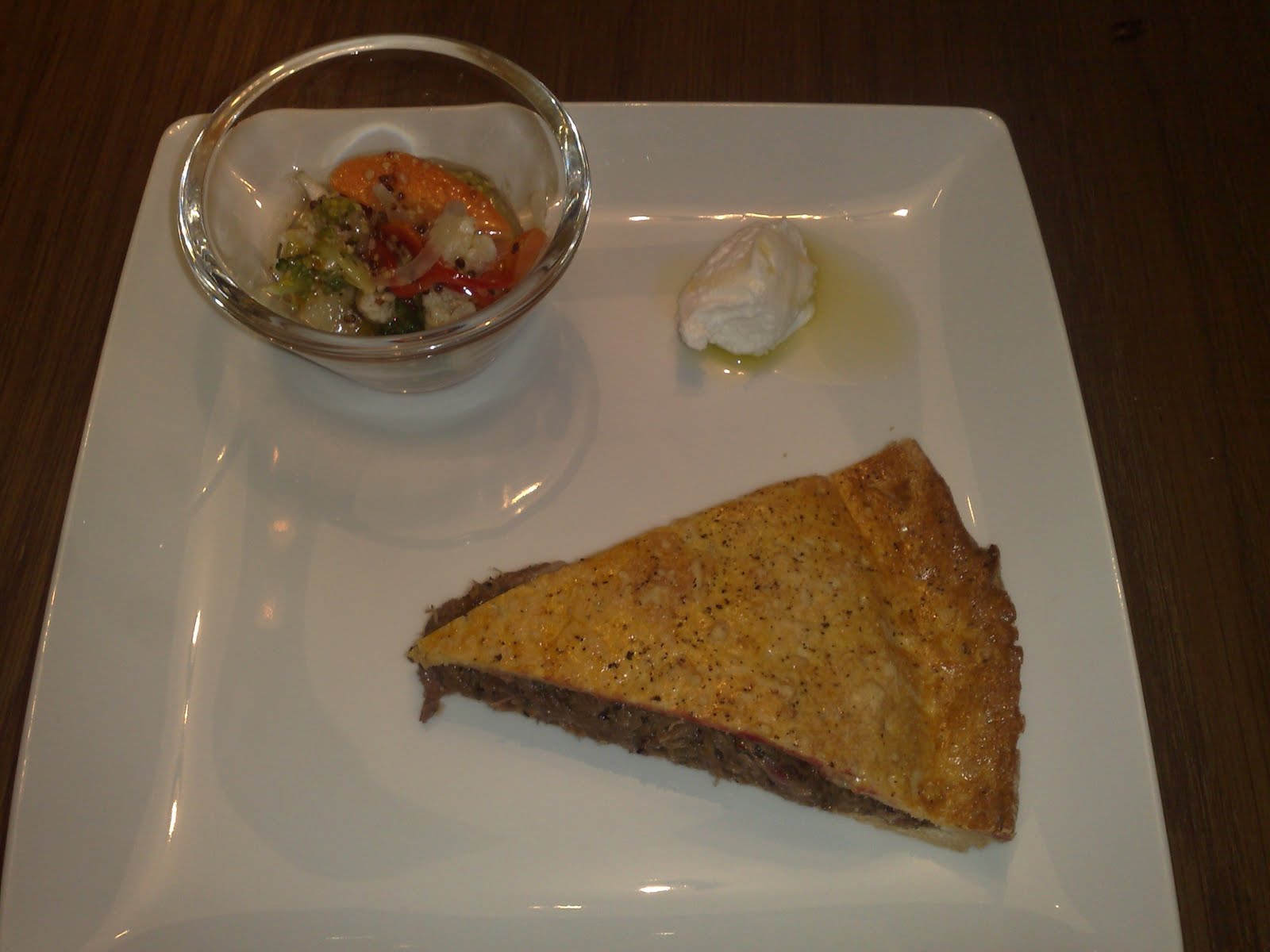 Πίτα με αρνάκι, δενδρολίβανο, θυμάρι, λεμόνι και λάιμ (συνοδευτικά λαχανικά τουρσί)