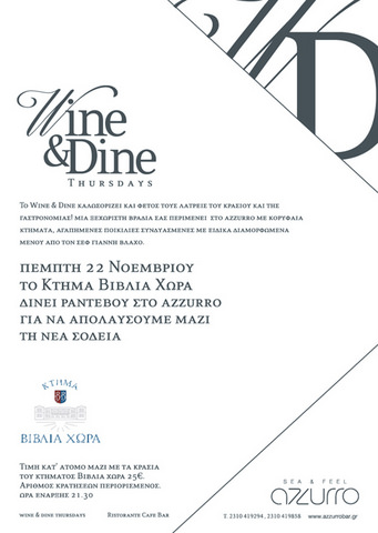 Azzuro Wine & Dine με Κτήμα Βίβλια Χώρα Πέμπτη 22 Νοεμβρίου