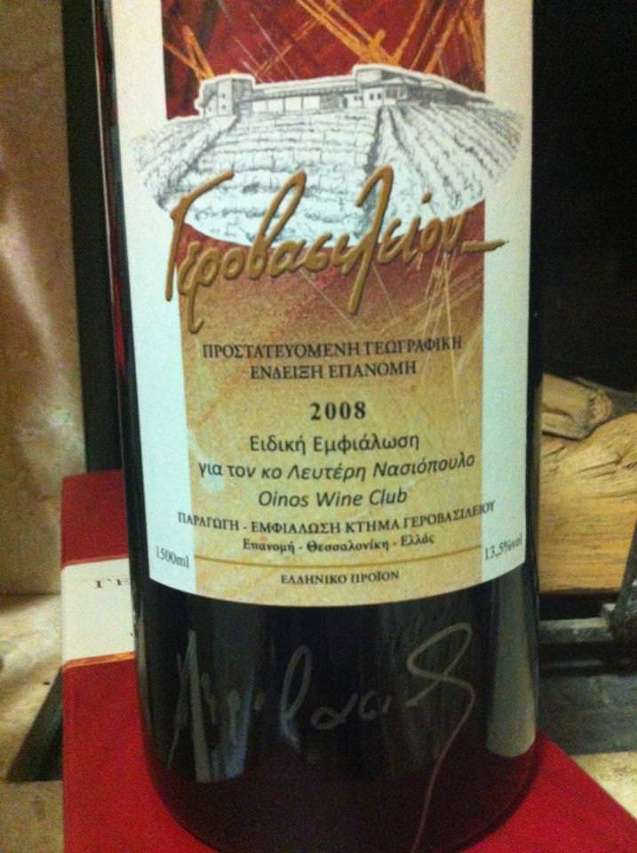 Δια χειρός Βαγγέλη Γεροβασιλείου και με την υπογραφή του οινοποιού, περέλαβε χθες Κυριακή την φιάλη Magnum ερυθρό Κτήμα Γεροβασιλείου, ο τυχερός αναγνώστης και μέλος του Oinos Wine Club, Λευτέρης Νασιόπουλος. Ο Λευτέρης με την παρέα του ξεναγήθηκαν στις εγκαταστάσεις του οινοποιείου και δεν κρύψανε τον εντυπωσιασμό τους για το μουσείο ανοιχτηριών που κοσμεί...