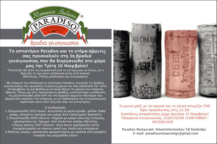 Έρχονται Χριστούγεννα και αρχίσαμε να βλέπουμε πολλά μενού Χριστουγέννων, όπως αυτό που θα δούμε παρακάτω που γι΄ακόμα μία χρονιά ξεχωρίζει λόγω σχέσης ποιότητας τιμής: ΜΕΝΟΥ ΧΡΙΣΤΟΥΓΕΝΝΩΝ ΟΡΕΚΤΙΚΑ •Βελουτέ με αστακό, γαρίδες, καραβίδες αρωματισμένη με λέμον γκράς. •Σορμπέ σαγκουίνι. •Κέικ με μανούρα Σίφνου, εσαλότ & καβουρντισμένο σουσάμι. ΣΑΛΑΤΑ •Άισμπεργκ, ραντίτσιο, σπανάκι, μάνγκο, φουντούκια, δυόσμο, ρόδι & βινεγκρέτ απο blueberries. ΚΥΡΙΩΣ ΠΙΑΤΑ Επιλογή από: •Τουρνεντό μόσχου...