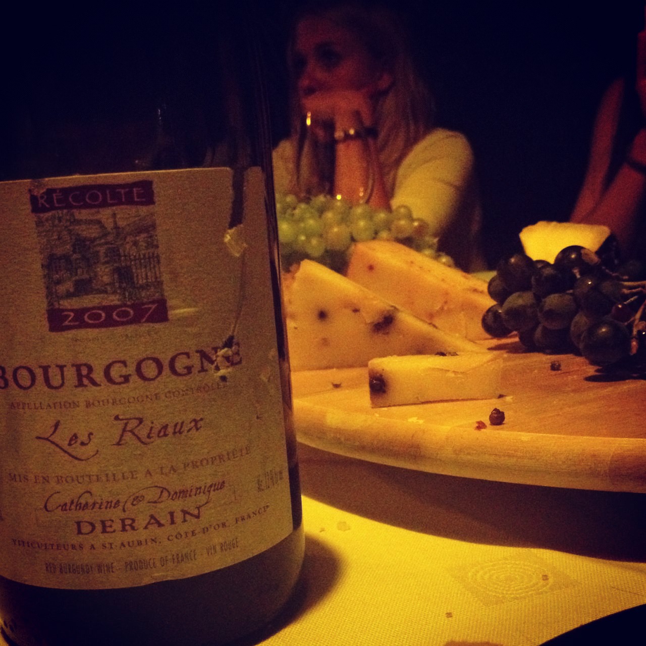 Περιοχή Βουργουνδία Ποικιλία Pinot Noir Το κρασί είναι το Bourgogne Les Riaux 2007 του Dominique Derain, βιοδυναμιστή από την Βουργουνδία. Είναι το "entrée de gamme" τους, δηλαδή το λιγότερο ακριβό τους κρασί. Αθείωτο από μία πολύ δύσκολη χρονιά για την Βουργουνδία με ζεστή άνοιξη και πολλές βροχές το καλοκαίρι με τρύγο σχετικά νωρίς. Σίγουρα δεν είναι ένα...