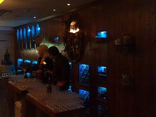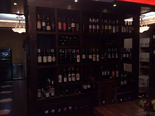 Περνώντας μέσα από ένα τυπικό Super market ξενοδοχείου, μερικά σκαλοπάτια σε οδηγούνε σε έναν υπόγειο χώρο όπου αρχικά σαστίζεις με την πληθώρα των φιαλών που αντικρύζεις και ξεπερνάνε σε αριθμό ετικετών πολλές κάβες λιανικής της Θεσσαλονίκης και των Αθηνών.