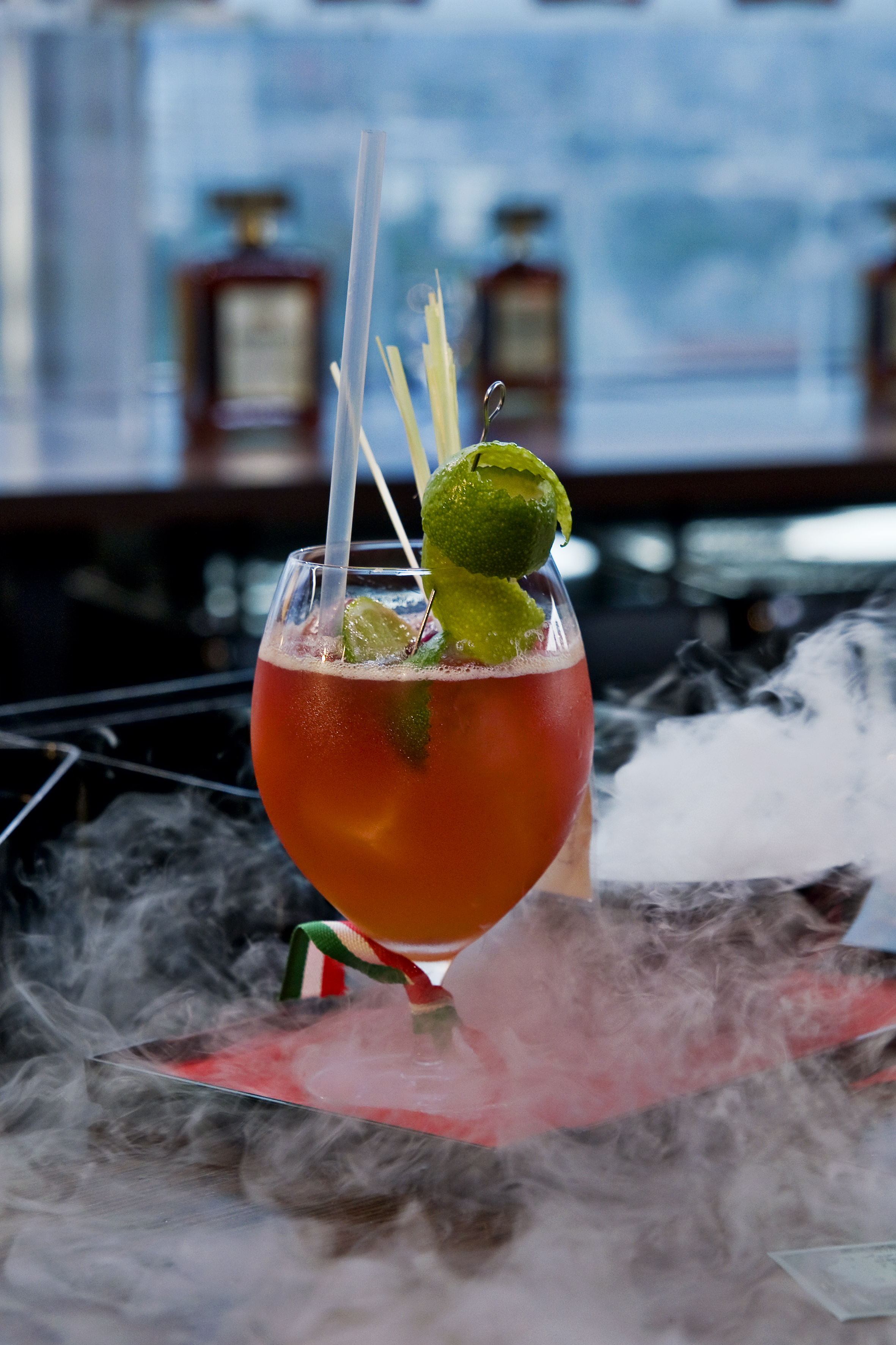 (*Τι είναι τα Mixing Stars: μουλιάζουμε φύλλα λαίμ kaffir, άγρια τριαντάφυλλα, λαίμ, γκρέιπφρουτ και πορτοκάλια σε ζεστό νερό την ώρα που φτιάχνουμε το κοκτέιλ. Ρίχνουμε το μείγμα πάνω σε ξηρό πάγο, διαλύοντας όλα τα αρώματα γύρω από το ποτό).