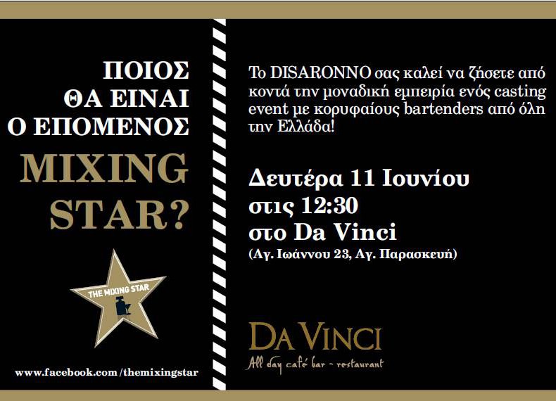 Το Disaronno Mixing Star, ο παγκόσμιος Διαγωνισμός bartending από το Disaronno, ψάχνει ακριβώς αυτό, τον επόμενο mixologist που θα κατακτήσει μία θέση ανάμεσα σε επαγγελματίες bartenders από όλο τον κόσμο, δημιουργώντας το επόμενο signature cocktail με βάση το Disaronno Amaretto.