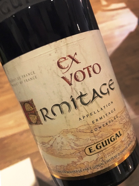 Το Ex-Voto Ermitage E. Guigal 2005, ωρίμασε για 42 μήνες σε καινούργιο βαρέλι και είναι ένα Μεγάλο, πλούσιο, bonny Syrah. Crème de cassis, μαύρα σμέουρα, καφές, τσακμακόπετρα, μελάνι, μείγμα μπαχαρικών και ένα άγγιγμα δέρματος φεύγουν από το ποτήρι του αδιαπέραστου ρουμπινί χρώματος αυτού Ermitage. Μνημειώδης επίθεση μαύρων φρούτων με σημαντική τανική παρουσία στον έκθαμβο ουρανίσκο. Φρούτα, ορυκτό, νότες αποξηραμένου γλυκάνισου και sur mesure οξύτητα παρατείνουν την ηδονή μέχρι την επίμονη επίγευσή του. Απολαυστικό τώρα αλλά η σπάνια δομή και ένταση του προτείνουν την παραμονή του στο κελάρι για τουλάχιστον μια ακόμα δεκαπενταετία.