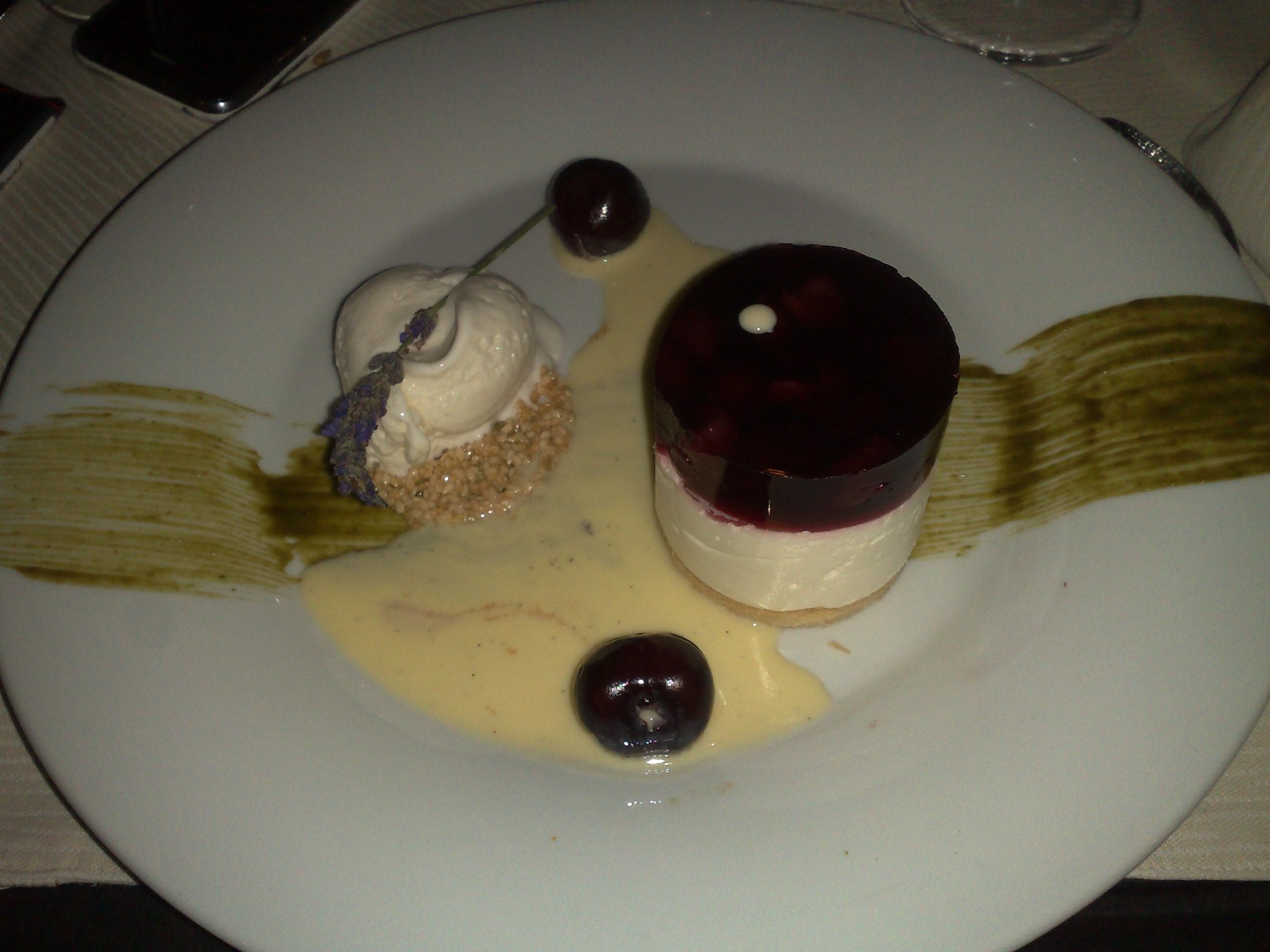“Cheese Cake” με βύσσινο, παγωτό λεβάντα & σος βασιλικού