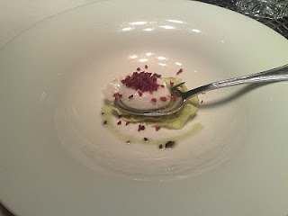 Creamy carnarolli rice risottoparmigianoreggiano cheese with white truffle foam