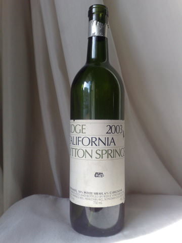 Το Lytton Springs 2003 Ridge Vineyards, εμφιαλώθηκε τον Ιανουάριο του 2005 μετά την 15μηνη ωρίμανση του σε συνδυασμό καινούριων και παλαιότερης χρήσης Αμερικάνικων βαρελιών και την διαύγαση του με 9 ασπράδια αυγών σε κάθε βαρέλι.