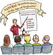 ’ όχι μόνο παράγονται χωρίς τη χρήση καθόλου χημικών, μονάχα με γηγενείς ζύμες, αλλά και χωρίς τη χρήση νέων βαρελιών αφού αυτά εισάγουν στο κρασί εξωγενή αρώματα. Μόνο η χρήση θειώδους ως συντηρητικό επιτρέπεται και αυτό σε ποσότητες μικρότερες των ‘συμβατικών’ κρασιών. Πολλοί όμως δεν χρησιμοποιούν καθόλου καθιστώντας τα κρασιά τους ιδιαίτερα ευαίσθητα. Άλλοι δεν φιλτράρουν καθόλου και δεν ντρέπονται να πωλούν κυριολεκτικώς θολά κρασιά στο βωμό της αγνότητας.” Στέφανος Τσαλαβούτας AIWS