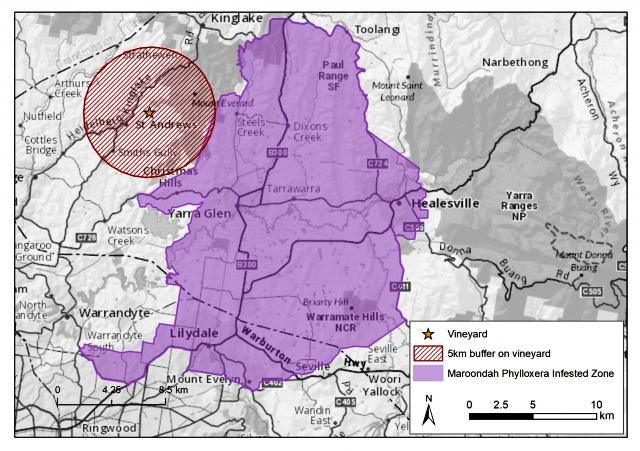 Αυτή η πιο πρόσφατη εστία ανιχνεύθηκε από την Vinehealth Australia και την Australian Grape and Wine Inc. σε έναν αμπελώνα που βρίσκεται στο St Andrews στην κοιλάδα Yarra.