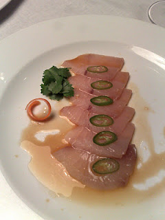 Μαγιάτικο σασίμι με πιπεριές jalapeno και yuzu soy sauce