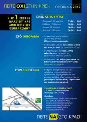 Στο φετινό Οινόραμα πρέπει να συμμετάσχουν ΟΛΟΙ. Γιατί όλοι μαζί πρέπει και μπορούμε να αντιμετωπίσουμε την κρίση, γιατί όλοι μαζί μπορούμε να δείξουμε στην ελληνική κοινωνία πως υπάρχει ελπίδα για όσους αγωνίζονται και δημιουργούν.