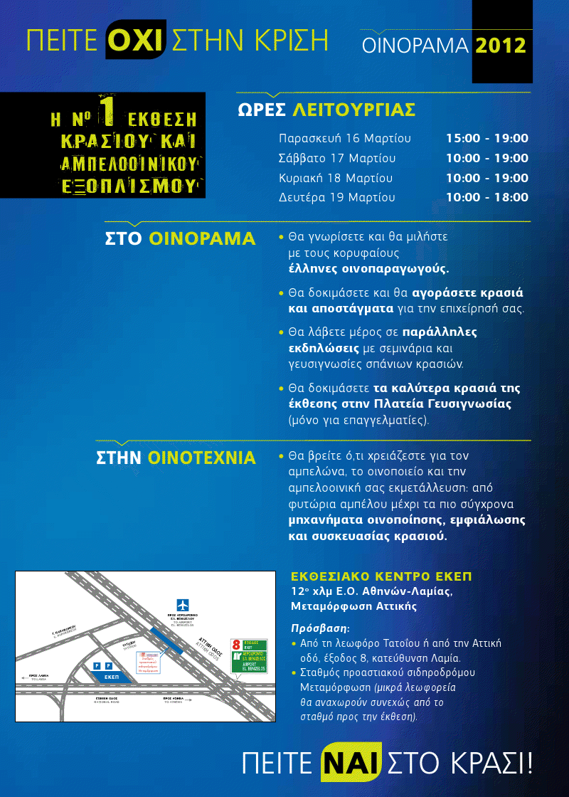 Στο φετινό Οινόραμα πρέπει να συμμετάσχουν ΟΛΟΙ. Γιατί όλοι μαζί πρέπει και μπορούμε να αντιμετωπίσουμε την κρίση, γιατί όλοι μαζί μπορούμε να δείξουμε στην ελληνική κοινωνία πως υπάρχει ελπίδα για όσους αγωνίζονται και δημιουργούν.