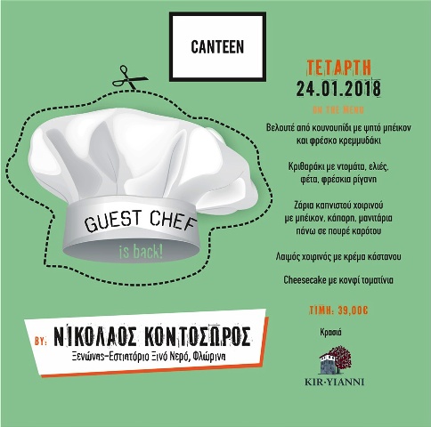 Τετάρτη 24 Ιανουαρίου Guest chef στο Canteen Νίκος Κοντοσώρος και Κτήμα Κυρ-Γιάννη