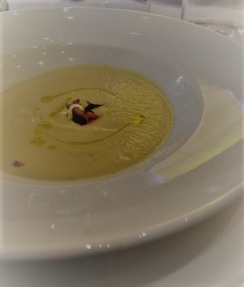 βελουτέ από κουνουπίδι με ψητό μπέικον και φρέσκο κρεμμυδάκι
