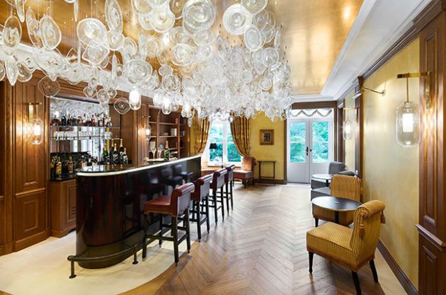 Πάνω από το μπαρ Perrier-Jouët στο σπίτι υπάρχει μια εγκατάσταση από την γιαπωνέζα καλλιτέχνιδα Ritsue Mishima, με δίσκους από βενετσιάνικο γυαλί.