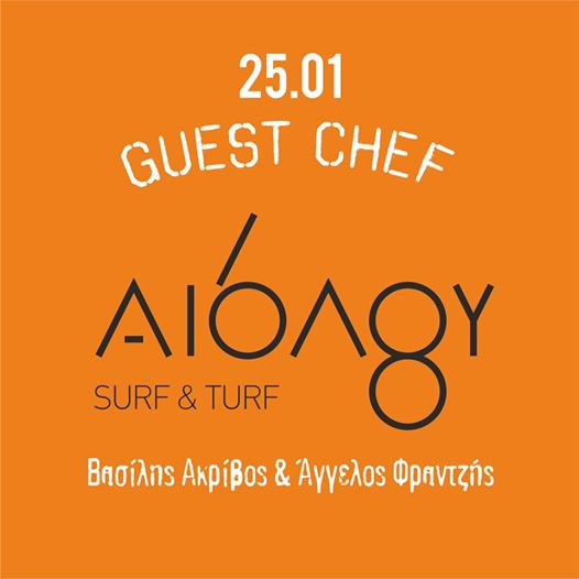 Ένα surf ‘n’ turf μενού από τον Βασίλη Ακρίβο του Ψάριστον και τον Άγγελο Φραντζή του BarBq, οι οποίοι μαζί με τον Γιώργο Ταρνάρη δημιούργησαν το Αιόλου 68 στο κέντρο της Αθήνας.