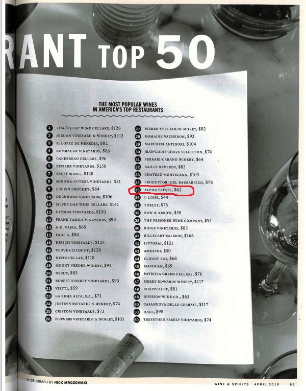 Το Κτήμα Άλφα στα 50 δημοφιλέστερα κρασιά στα καλύτερα Αμερικάνικα εστιατόρια