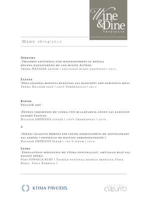 WINE & DINE Thursdays στο AZZURRO με ΚΤΗΜΑ ΠΑΥΛΙΔΗ