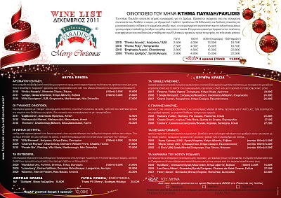 Wine list-Εστιατόριο Paradiso-Δεκέμβριος 2011