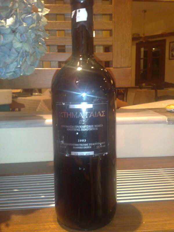 Από κλήματα 25 ετών που βρίσκονται σε υψόμετρο 650μ-μεσαία ζώνη Νεμέας-στο Κούτσι.Το Κτήμα Γαία είναι η ναυαρχίδα του οινοποιείου που δημιουργήθηκε το 1994 απο τους :Λέων Καράτσαλο (Γεωπόνο Α.Π.Θ.) και Γιάννη Παρασκευόπουλο (Γεωπόνο Α.Π.Θ., Διδάκτορα Οινολογίας του πανεπιστημίου Bordeaux II)και ένα από τα κρασιά σύμβολα της περιοχής.Η φιάλη της δοκιμής-μέγεθος magnum 1,5lt.- ήταν μία από τις 400 φιάλες(magnum) που εμφιαλώθηκαν το 2003.To Κτήμα Γαίας 2003 εμφιαλώθηκε