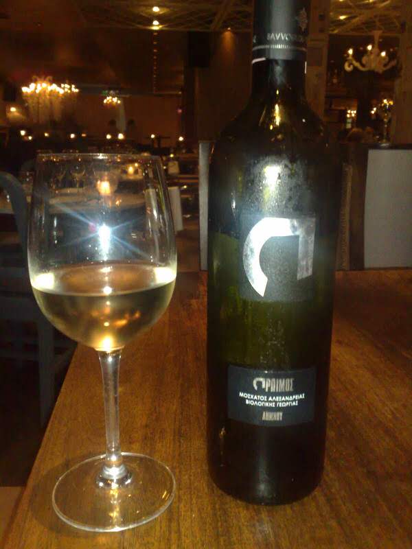 Από την ποικιλία Μοσχάτο Αλεξανδρείας,από σταφύλια βιολογικής γεωργίας σ’ ένα μπουκάλι με ελκυστική,σύγχρονη(πλην όμως ασαφή)ετικέτα ήταν το κρασί της δοκιμής μας.