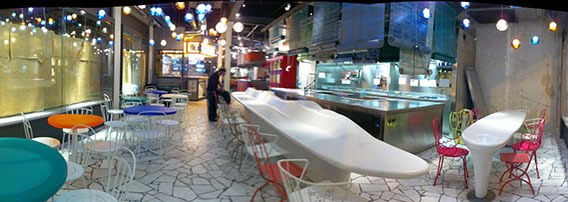 Ο τέταρτος τομέας είναι ένα φουτουριστικό μπαρ με ψηλά σκαμπό, που σερβίρει avant-garde αλίπαστα.