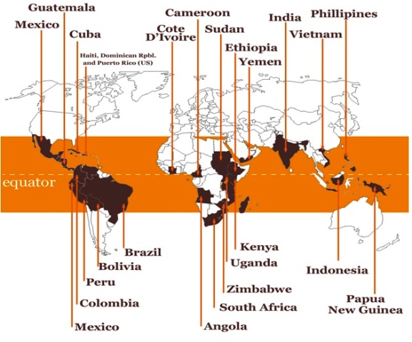 Οι καφέδες από τη Νότια Αμερική έχουν λίγο περισσότερη οξύτητα και γλυκύτητα καραμέλας εξαιτίας της καλλιέργειας τους σε υγρότερο κλίμα και σε υψηλότερα υψόμετρα. Επίσης ένα δέντρο καφέ στο βόρειο ημισφαίριο θα παράγει φασόλια τα οποία είναι εγγενώς διαφορετικά από τα φασόλια που καλλιεργούνται στο ίδιο δέντρο στο νότιο ημισφαίριο