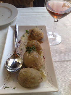 Από μια αρκετά καλή λίστα κρασιού με κυρίως ελληνικές ετικέτες( γύρω στις 50, διαλέξαμε ένα Rose de Xinomavro 2010 Thymiopoulos Vineyards, υποστηρίζοντας πως λόγω της ιδιαιτερότητάς τους τα ροζέ κρασιά είναι άριστοι διεκπαιρεωτές με μια μεγάλη γκάμα εδεσμάτων που συχνά βρίσκουμε σε ένα ελληνικό τραπέζι. Δεν μας διέψευσε.