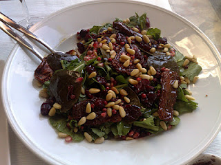 Σαλάτα ρόκα, καπαρόφυλλα, λιαστή ντομάτα, κουκουνάρι, κόκκινο πιπέρι, ρόδι, κράνα, βαλσάμικο ****1/2